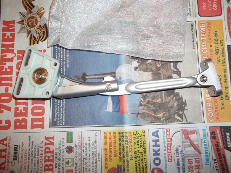 В продолжение темы, решил пойти дальше и сделать автопроветривание т.е. чтобы по нажатию кнопки на пульте открывалась форточка. Выкладываю фото будущего механического привода (был куплен в Питере на Школьной в магазине "Мебельный самоделкин" за 205 р. Как приеду домой сразу продолжу фотоотчет.