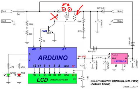Получил таки я наконец-то солн. панель, правда на 100 Ватт (вместо планируемых на 50). И провел полевые испытания. Как и следовало ожидать, первым не выдержал диод на входе СП... сгорел. Остальная часть схемы работает. :) Диодик я заменил на более мощный (SBL2045) и посадил на радиатор.