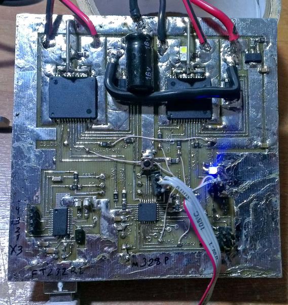 Но есть и приятная сторона! Мой друг Рома "master-uri" На данную схему сделал разводку платы и любезно предоставил мне ее для изготовления. Мой первый опыт изготовления плат с помощью лазерного принтера и утюга оказался успешным. Плата заработала как и было запланировано. Без каких либо сбоев. фото выкладываю.