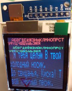 gfx->println(utf8rus("Я тебя целую В твой холодный носик. \nДо свиданья, Киска! Твой любимый пёсик."));