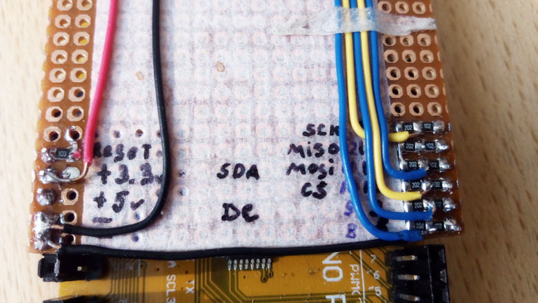 Дорожки резать (синие полоски) , ( олды вспомнят как на сименсах резали для прошивки и анлока :) , или отверстия разработать с той стороны на эту , чтоб дорожки разорвать на ту сторону. IM2 надо подключить на + , как и IM0 IM1 для перевода в режим SPI 4пин. SDA это к MOSI, проще перекинуть на пин ID шлейфа дисплея , т.к. он не используется ( выпаяв ID резистивный делитель R1 R2 , они нужны были чтоб сотовый телефон АЦП распознал что это якобы его дисплей от его производителя и под его прошивку, или возможно чтоб если прошивка не может командами считать какой контроллер поставили в дисплей, то чтоб по резистивному дисплею распознавала какая партия дисплеев с другими контроллерами по договоренности с фабрикой (на случай если закончились одни контроллеры , ставят другие). Для этого в последующих прошивках телефонов ещё предусматривают иниты для нескольких возможных контроллеров в дисплеях ) SDA (MOSI) , CS , DC , WR (CLK) - это и есть 4 пин SPI . Ещё Reset , +3.3 , gnd . Катоды светодиодов подключил через резистор 10ом (можно 2..5 Ом) .