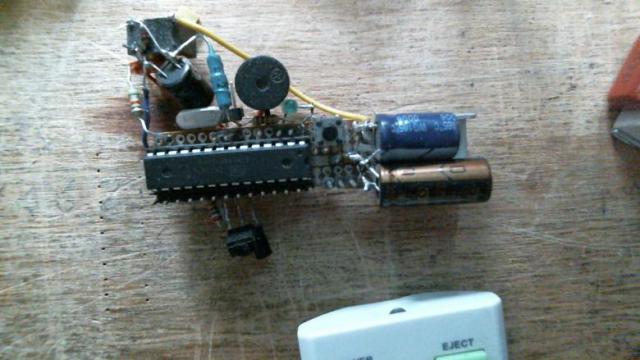 Позволяет атакуещего хакера довести до умопомешательсва простыми щелчками на ИК пульте лежа не диване. Направление принимаещего приемника выбрано обтимальным под углов в при оптимальном врезании в висящий провод пиитания. Развесовка устрйоства отптимальная для работы на весу. Располоежение кнопки резет и контрольной лампочки позволяет менять программу не отрявая от провода на весу. Расположение под углом 45 градусов реле позволяет легонько покачиватся во время щелчков. Если громкости щелчков недостаточно продублировано писком динамика. Если вы сипользуете где спять дети есть моргающая лампочка.