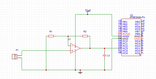 Как я понимаю, по даташиту на ОУ на выходе я получу сигнал в диапазоне (0)+0.1V < VO < (Vref)–0.1V или (0)+0.075V < VO < (Vref)–0.075V и это зависит от нагрузки Rl. Каку нагрузку принять, если выход подключен ко входу Atmega8?