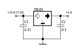 Лучше (на длинных линиях) 78L05 запитать от 9 Вольт ( V in ), и ,понятно, с кондером 100.0- 470.0 не выходе.