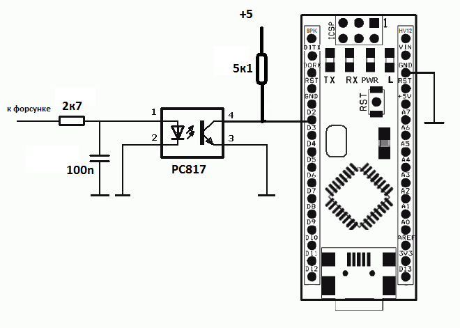 Большое спасибо за быстрый ответ. А какой диод использовать лучше в данной ситуации(1N5819)? (извините за элементарные вопросы, я далекий от темы электроники) Цифровые входы уже все заняты дисплеем и датчиками(собираю расходомер в авто) Конденсатор использовать электролитический ? или разницы нет ?