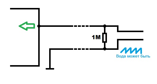 Смысл в чем, заряжаем конденсатор, затем сразу же проверяем есть ли напряжение на проводах, если есть - то значит вода, потом проверяем напряжение уже на конденсаторе, если есть значит нет обрыва, если нет, значит обрыв, еще бы короткое замыкание определить, хотя впринципе все равно сигнализировать в любом случае...