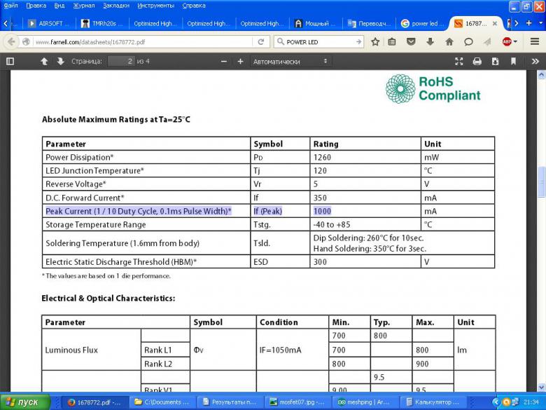 ну раз так теорией подкован, дай мне , пожалуйста, кратковременный пиковый ток этого диода по даташиту , и время его действия ;)