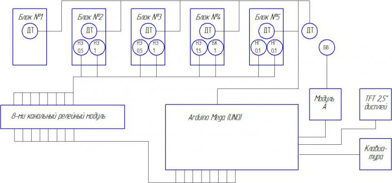 Схема предназначена для контроля и поддержания температурных параметров в блоках: