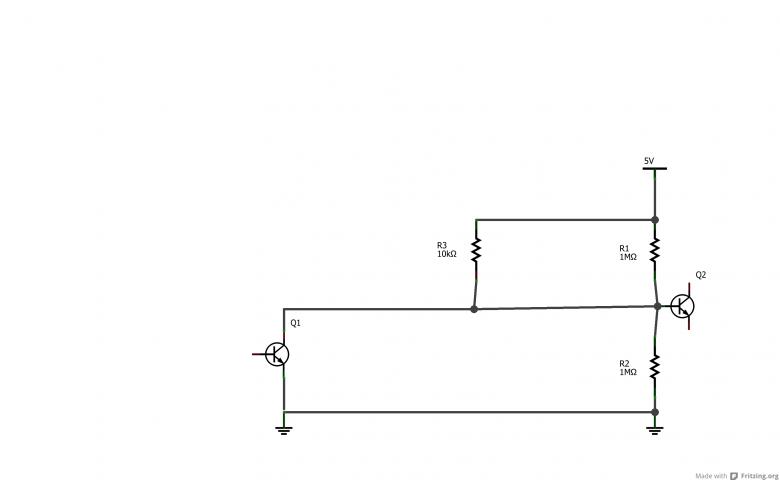 Q1 - датчик, R_VCC, ( R1, R2, Q2 )=Ардуина
