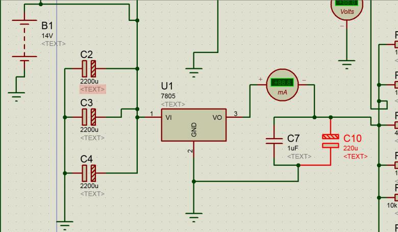 там миллиапмперметр, просто в программе поставил. так в реале его нет... там же стоят 2 кандюка на 0,1uf и 220uf... на входе лмки стоят 0,1uf и 2200uf. грелась, но когда отключил дуину, перестаала греться.