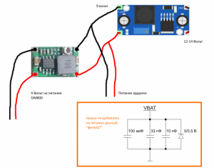 Питание ардуино и SIM800, как я рисовала выше, осуществляется спомощью двух модулей* питания: