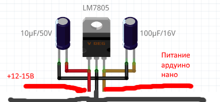 Достаточно ли такой схемы для питания ардуино нано? Сильно будет греться LM7805?