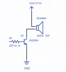 Схема из инета, мои реальные номиналы R1 = 680 Ом, Q1 - С1740, VCC = 5v. вместо динамика обычная пьезо пищалка. С ардуино приходит сигнал tone() частотой 1200 Гц
