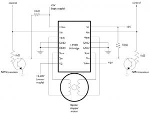 Для реальных нагрузок моторы размером NEMA 14 17 23 ... минимум соответсвенно L298 с 8-ю диодами 1 емкостью и в зависимости от размеров железа мотора может 5 вольт не хватит и прийдеться 12 вольт подавать.