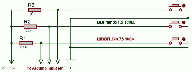 Какие ньюансы? Потеря напряжения, так провода 1,5мм2 для логической единицы пойди хватит, того что остается от 5v, даже если и 30 метров. Ток же будет мизерный или я не прав?