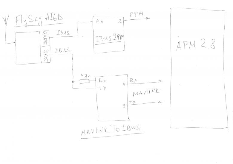 Сейчас определенные команды от пульта на контроллер идут через IBUS2PPM. Протокол IBUS контроллеру АПМ не знаком поэтому и используется конвертер IBUS2PPM.