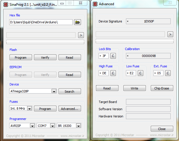 «Прошивка hex файлов при помощи другой Arduino и SinaProg»