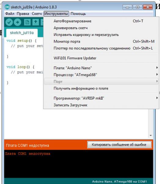 Всем привет! Ребенок съездил в лагерь, где занимался Arduino и напряг меня установить на комп Arduino. Немоно поискав я нашел установочнкую версию и установил следуя вот этой инструкции. Все вроде нормально установилось, но портов никаких программа не увидела и подключить к ней ничего не получается. Строка в меня "Инструмены" -> "Порт" неактивна. Комманда "Монитор порта" выдает "Плата СОМ1 недоступна". Что делать, какие драйверы устанавливать (на Win 7)?