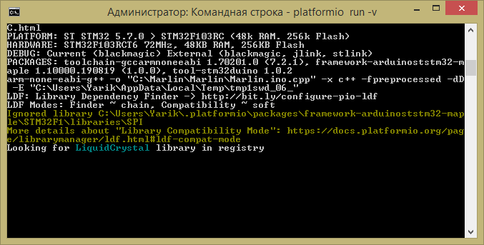 Собираю Марлин 2.0 для STM32F103RC, всё вроде как интуитивно, только сборка стопорится в самом начале, на этапе установки библиотек. Например так: