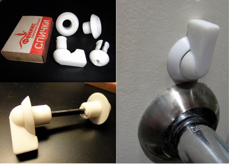 Теперь принтер стал моей любимой игрушкой. С печатных пробничков перешел на полезные вещи. Иногда ночью просыпаюсь....так хочется попечатать! Вот, например, сделал маленькую ручечку на запорчик в ванную комнату. Модели для печати делал уже сам :)