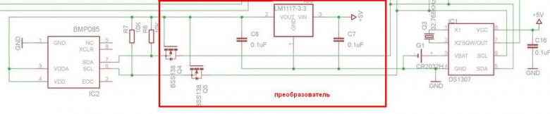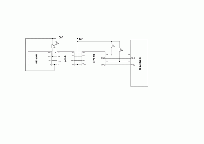 Надо собрать схему: модуль BMP085 - преобразователь уровня - часы - контроллер. Нарисовал схему включения, но нужен ваш совет, правильно ли я понял и нарисовал схему включения?
