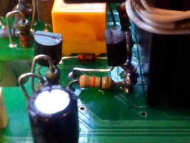 тут фото изменений. Вместо одного из старых резисторов - новый, одна сторона в отв. ругая на ножку диода с обр. стороны платы. Э и Б транзистора над диодом, а коллектор тянется влево.