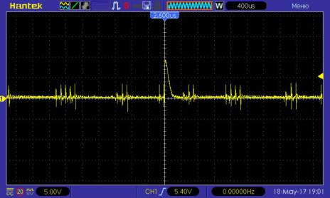 P.S.p.s. Убрал резистор подальше от дросселя, стало гораздо красивее. Импульс получается 19 вольт и а наводки +- 2 вольта. Теперь сделать каскад, чтобы на помехи не реагировал.