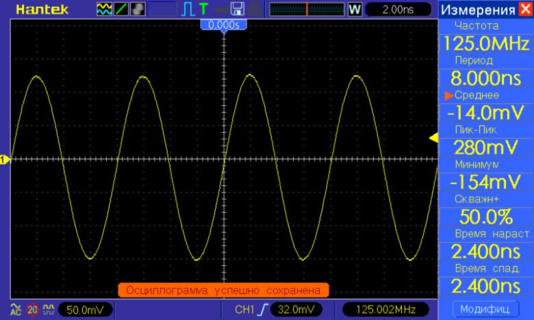 Вот так, например, выглядит осциллограмма на 125 мегагерц