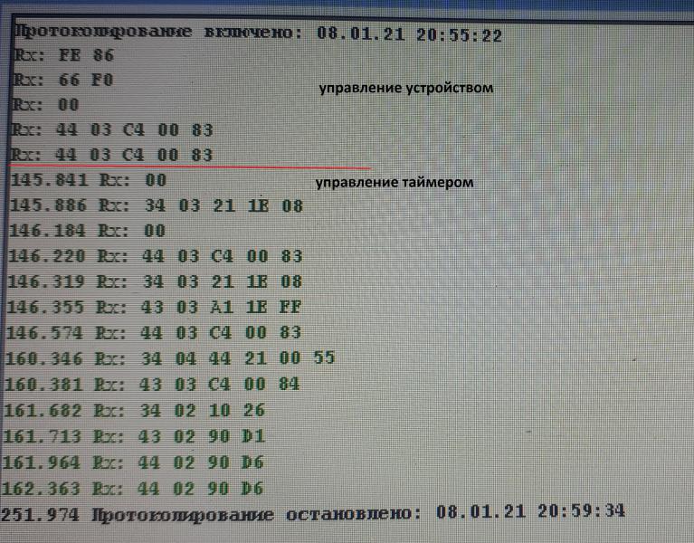 Это лог что получилось снять, включил и выключил через СМС, и включил и выключил таймером.