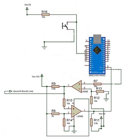 Можно убрать l9637d, оставив схему lm393 и играться дополнительными резисторами пробовать wbus 10к к питанию подтянуть, 2k, 1k