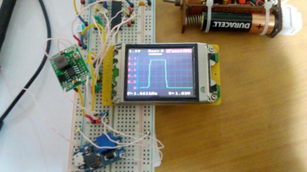 Попробовал вариант питания для варианта на голой меге и ЛС020. Питание выглядит так: Китайский степ-ап преобрзователь от лития дает 12 вольт, идущих на подсветку и питание степ-даун преобразователя на 5 вольт от которого питаю МК и дисплей. Пока без обвеса усилками и т.д. Потребление от лития около (чуть меньше) 100 миллиампер. Т.е. вполне допустимо батарейное питание.