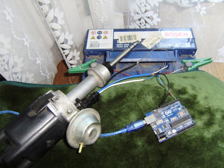 Датчик рассчитан на 12В, но с ардуинкой подружился вполне, т.е. 5В для работы ему хватило. Кроме ардуинки, самого датчика и разъёма ("фишку" обрезать не хотелось, купил разъём) потребовался еще резистор 5,6К номинал резистора был выбран "средне-потолочно", но работает...