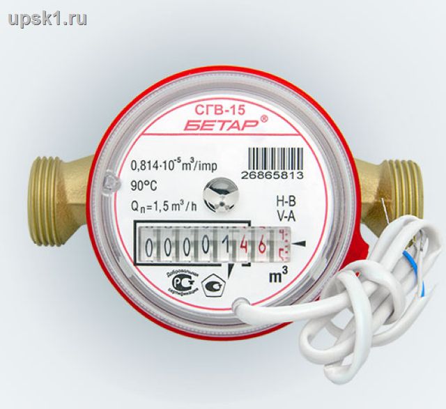 Вот. Недавно закончился срок поверки на счетчик воды, и я приобрел новый счетчик уже с датчиком расхода. СГВ-15Д. Его выходной контакт замкнут каждый 10-й литр воды.