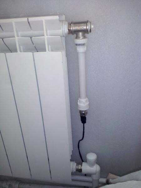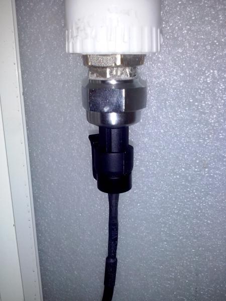 У датчика резьба G1/4"... Но в ЛеруаМерлен подобрал мне продавец два переходника в резьбу 1/2". Всё это скрутив в кучу, я всё равно установил на расстоянии от радиатора отопления через полипропиленовую вставку, потому что таким образом датчик не подвергается нагреву и всегда имеет комнатную температуру. Кабель применил како-то древний советский экранированный от звукотехники похоже, как раз хватило до контроллерного шкафа. Датчик цепляется по трем проводам. Красный +5В, черный GND, желтый это аналоговый сигнал от 0,5 до 4,5в.