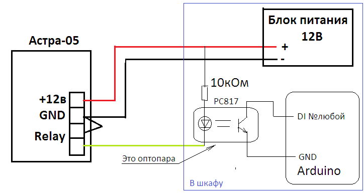 А на пине ардуинки HIGH и ждем LOW?, ведь в объемнике реле постоянно замкнуто и размыкается во время паники. Или все меняет оптопара?