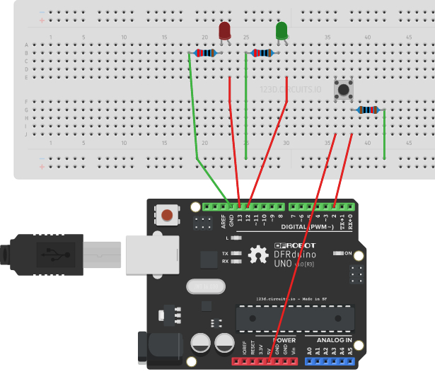 Вместо диодов подключаю провода от двух кнопок (от линий соединенй кнопок) . Запускаю скетч и получаю последовательный набор нажатий на кнопки.