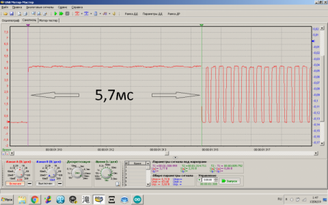 Здравствуйте MaksVV! Смотрел сигнал с 9 пина осциллографом, вот такая картина. Ранее вы писали что открывающий импульс равен 2мс. Это FULL MODE, Impedans 5om. Далее следуют импульсы удержания в 4кГц как и обещано. Если вас еще интересует данная тема, посмотрите что может быть не так.
