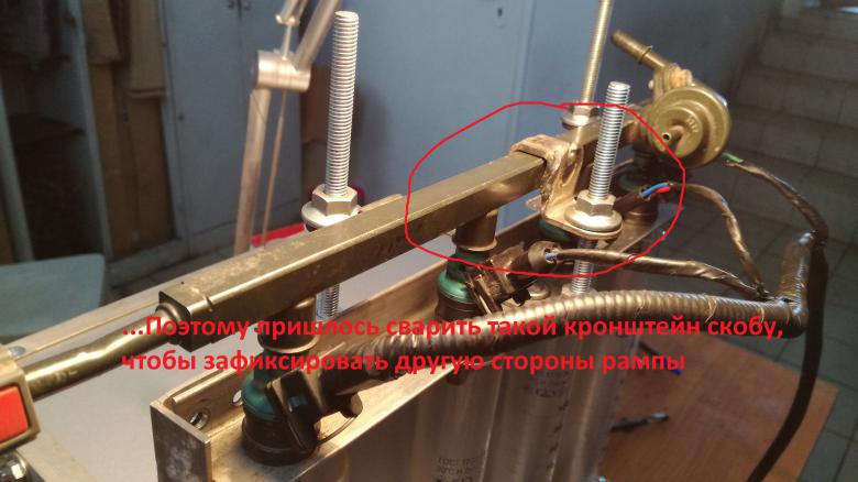 Топливная рампа от дэу нексия (уши подогнуть пришлось). На разборках рампы разные есть, от 300 руб.