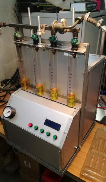 Планирую просверлить (пока не знаю чем) мензурки внизу, диаметр 10мм. заказал такие штуцеры (1/8" на 8мм) , гайки и сборку кранов 4шт. , чтобы слив с мензурок делать. Решил не связываться с эл.магн. клапанами. дороже и менее надёжно, имхо.