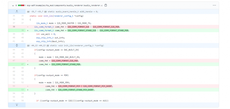 P.S. Для полноты картины: под конец компиляции были замечания к фрагментам работы с I2S (../components/audio_renderer/audio_renderer.c:53:3: warning: 'I2S_COMM_FORMAT_PCM_SHORT' is deprecated), файл с логом здесь: https://yadi.sk/d/xdiYgYyZE7MHjQ
