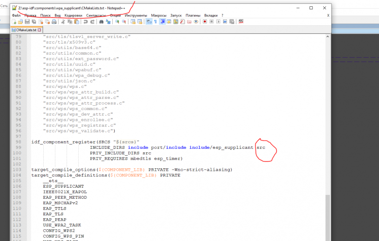 В n:\Common_Applications\esp-idf\components\wpa_supplicant\CMakeLists.txt по Вашему наставлению (СПАСИБО!) прописано: