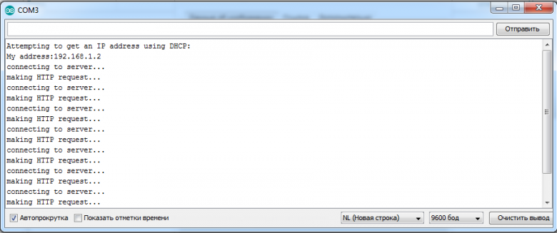 #include <SPI.h> #include <Ethernet.h> // Enter a MAC address and IP address for your controller below. // The IP address will be dependent on your local network: byte mac[] = { 0xDE, 0xAD, 0xBE, 0xEF, 0xFE, 0xED }; IPAddress ip(192,168,1,2); // initialize the library instance: EthernetClient client; const unsigned long requestInterval = 60000; // delay between requests char serverName[] = "www.twitter.com"; // twitter URL boolean requested; // whether you've made a request since connecting unsigned long lastAttemptTime = 0; // last time you connected to the server, in milliseconds String currentLine = ""; // string to hold the text from server String tweet = ""; // string to hold the tweet boolean readingTweet = false; // if you're currently reading the tweet void setup() { // reserve space for the strings: currentLine.reserve(256); tweet.reserve(150); // Open serial communications and wait for port to open: Serial.begin(9600); while (!Serial) { ; // wait for serial port to connect. Needed for Leonardo only } // attempt a DHCP connection: Serial.println("Attempting to get an IP address using DHCP:"); if (!Ethernet.begin(mac)) { // if DHCP fails, start with a hard-coded address: Serial.println("failed to get an IP address using DHCP, trying manually"); Ethernet.begin(mac, ip); } Serial.print("My address:"); Serial.println(Ethernet.localIP()); // connect to Twitter: connectToServer(); } void loop() { if (client.connected()) { if (client.available()) { // read incoming bytes: char inChar = client.read(); // add incoming byte to end of line: currentLine += inChar; // if you get a newline, clear the line: if (inChar == '\n') { currentLine = ""; } // if the current line ends with <text>, it will // be followed by the tweet: if ( currentLine.endsWith("<text>")) { // tweet is beginning. Clear the tweet string: readingTweet = true; tweet = ""; } // if you're currently reading the bytes of a tweet, // add them to the tweet String: if (readingTweet) { if (inChar != '<') { tweet += inChar; } else { // if you got a "<" character, // you've reached the end of the tweet: readingTweet = false; Serial.println(tweet); // close the connection to the server: client.stop(); } } } } else if (millis() - lastAttemptTime > requestInterval) { // if you're not connected, and two minutes have passed since // your last connection, then attempt to connect again: connectToServer(); } } void connectToServer() { // attempt to connect, and wait a millisecond: Serial.println("connecting to server..."); if (client.connect(serverName, 80)) { Serial.println("making HTTP request..."); // make HTTP GET request to twitter: client.println("GET /1/statuses/user_timeline.xml?screen_name=[ ]&count=1 HTTP/1.1"); client.println("HOST: www.twitter.com"); client.println("Connection: close"); client.println(); } // note the time of this connect attempt: lastAttemptTime = millis(); }Подскажите так ли это работает как я думаю?