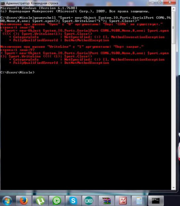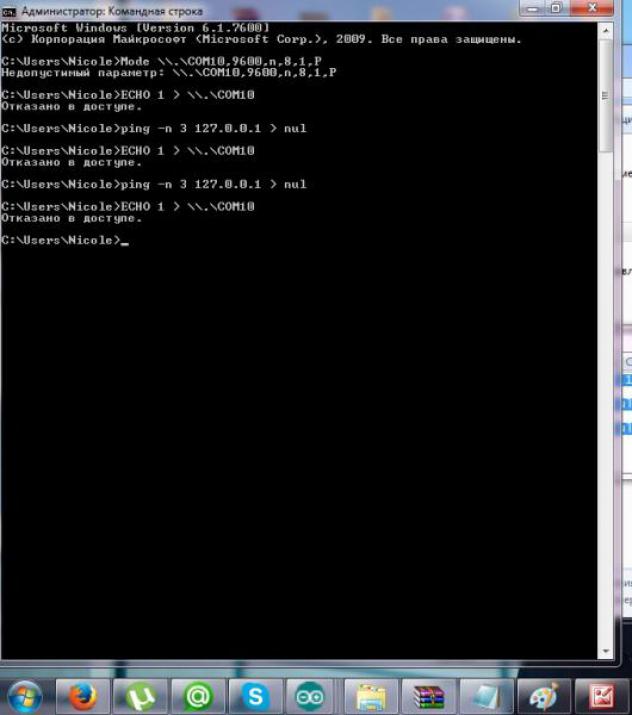 Здравствуйте! Появилась надобность управлять ардуино через bat-ник, какие команды в WIN7 для открытия порта? Mode COMx,бод,паритет,кадр,стоп,P где: x-номер СОМ порта в WIN7 не работает, пишет "недопустимое имя устройства COM" синтаксис в win7 другой? или нет прямого доступа к портам?