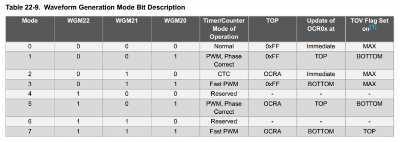 В этой таблице интересный режим под номером 5. Так полагаю, что в OCR2A записываем необходимое значение для получения необходимой частоты. А сам ШИМ сможем снимать только с пина B