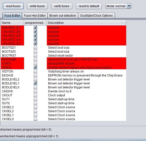 Самое главное не путать Hfuse, Lfuse и Efuse.