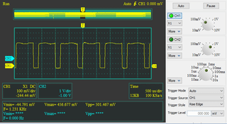 если закомментировать строки 28 и 46 то после загрузки программы осциллограф показывает нужную картинку... НО ... через какоето время (до одной минуты) частота увеличивается...