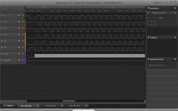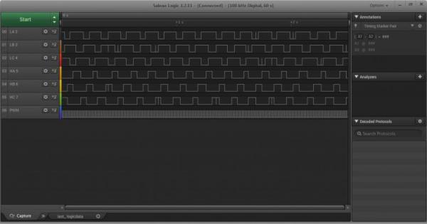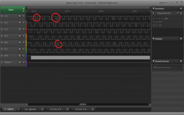 Всем привет! Пытаюсь написать управляющую программу для безщеточного мотора постоянный ток, вроде получилось но двигатель работает не чисто. Если прикоснуться к двигателю чувствуется вибрация. Когда устанавливаю на место оригинальный чип управляющий то все работает чисто. Думаю что дело в аналогврите но незнаю как сделать по другому что бы исключить эту проблему. А может дело в другом? Кто знает подскажите пожалуйста куда копать? Заранее благодарен!