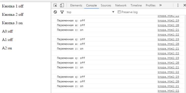 если оставить q, которой присвоен текст on/off выводится сам текст