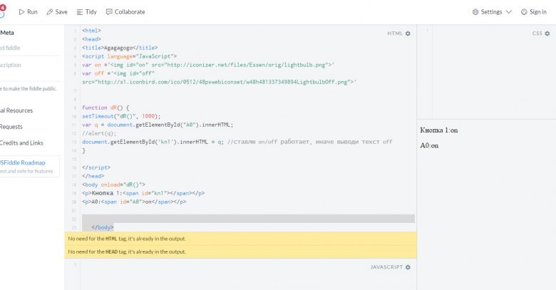 document.getElementById('kn1').innerHTML = q ; // тут картинка должна быть или с off приходит еще с какими то символами типа \r\n