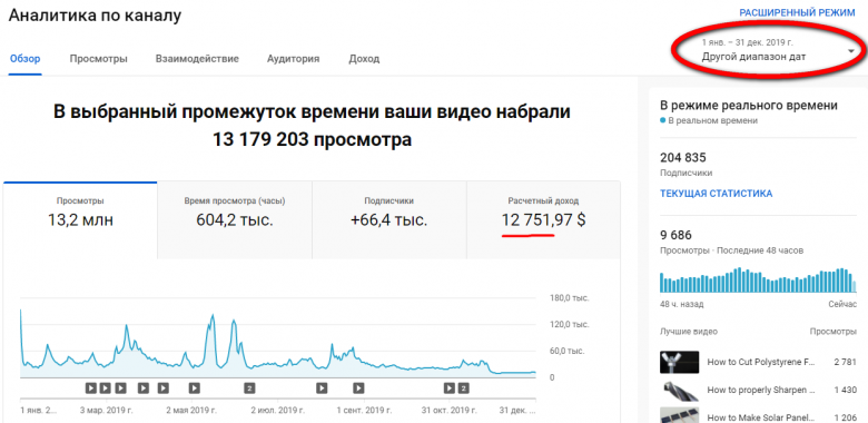 b707, у Гайвера русский канал (впрочем, есть английский, но не пошел - у него сильно говорильный стиль), поэтому конвертация раз в 10-20 ниже - Россия. Я тоже не десятки килобаксов/мес. имею, самый жирный был 2019-й: